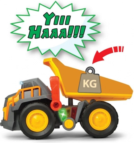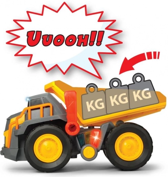 Ten Volvo zabawkowy wywrotka zapewnia nieograniczoną zabawę w udawanie gry. Posiada napęd bez silnika i reaguje na trzy różne poziomy obciążenia za pomocą kolorowych świateł i sygnałów dźwiękowych.