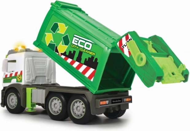 Dzięki licencjonowanemu designowi Mercedes‑Benz oraz wytrzymałej, plastikowej konstrukcji zabawka idealnie nadaje się do codziennej zabawy w domu i na zewnątrz. Wspiera rozwój motoryki małej, wyobraźni oraz naukę segregacji odpadów i dbałości o środowisko.