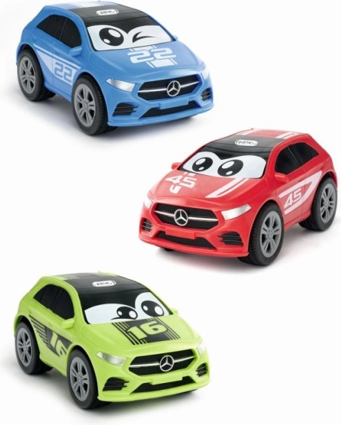 Wybierz spośród wariantów: czerwonego, niebieskiego lub zielonego. Licencjonowany design MERCEDES z oczkami i numerami spodoba się każdemu dziecku.