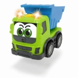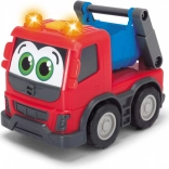 Wesoła robocza ciężarówka dla maluchów na wolnym biegu ucieszy dzieci kolorami i interaktywnością. Oferuje efekty świetlne i dźwiękowe, trzy warianty nadwozia (wywrotka, betoniarka, samochód ciężarowy) oraz kompaktową długość 13 cm dla łatwego chwytania. Wytrzymałe plastikowe wykonanie i wolny bieg wspierają bezpieczną i kreatywną zabawę.
