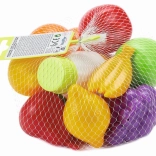 Rekwizyty żywnościowe w siatce, idealne do zabawy dla dzieci. Zawiera różnorodne rodzaje owoców, które rozwijają wyobraźnię Twojego dziecka.