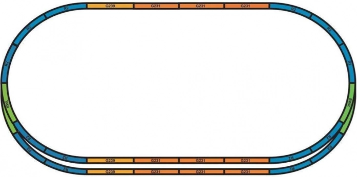 Podkłady są precyzyjnie dopasowane do segmentów torów i dzięki dołączonym śrubkom trzymają się pewnie na miejscu. Budowa pętli z równoległym torem jest dzięki temu łatwa, szybka i bez bałaganu.