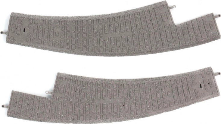 Elementy dokładnie odpowiadają odcinkom prostym i łukowym, w tym specjalnym segmentom pod zacisk zasilający oraz pod łukowe rozjazdy. Montaż jest prosty – podkłady wsuwasz pod tor i łączysz na stałe dołączonymi śrubkami. Efekt to stabilna, równa i cicha linia, gotowa do bezproblemowej eksploatacji.