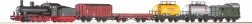 - Lokomotywa parowa BR 55 z tendrem, 5× wagon towarowy, 12× łuk R2 z podsypką (55412), 5× prosta G231 z podsypką (55401), 1× prosta G231 z przyłączem zasilania (55406), podkładka pod zacisk (55447), zacisk zasilający (55270), podstawowy kontroler analogowy z zasilaczem (55003)