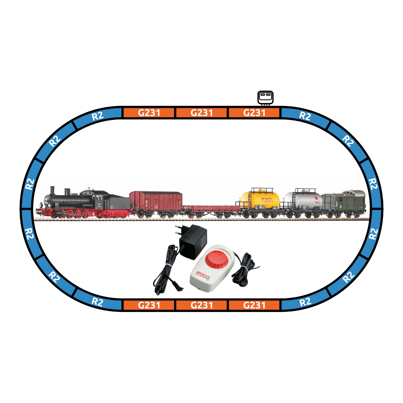 Zestaw startowy oferuje realistyczny pociąg towarowy z lokomotywą parową BR 55 (G 7.1) DB, epoka III, trzyosiowym tendrem i pięcioma różnymi wagonami. Dzięki torom z podsypką budowa i demontaż trasy są szybkie i trwałe, co docenią zarówno początkujący, jak i zaawansowani modelarze. Podstawowe sterowanie analogowe umożliwia płynną jazdę od razu po rozpakowaniu.