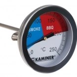 Termometr jest wykonany z najwyższej jakości stali nierdzewnej, odpornej na wysokie temperatury i zużycie, co gwarantuje długą żywotność. Dzięki dużej i czytelnej tarczy łatwo odczytasz temperaturę nawet w trudniejszych warunkach, takich jak dym. Dzięki analogowej konstrukcji, niewymagającej baterii, jego użytkowanie jest niezawodne i bezproblemowe.
