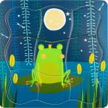 Każda warstwa przedstawia inny etap – od jajeczka, przez kijanika (pelnika), aż po Żabiego Księcia. Dzieci w zabawny sposób utrwalają wiedzę o przyrodzie, jednocześnie trenując układanie według kształtów i obrazków.