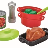 Z tym kompletnym zestawem naczyń dzieci mogą cieszyć się nieskończonymi godzinami gotowania. Zestaw zawiera garnki z pokrywkami, rondelki, patelnie, brytfannę i różnorodne jedzenie, które dodają realizmu.