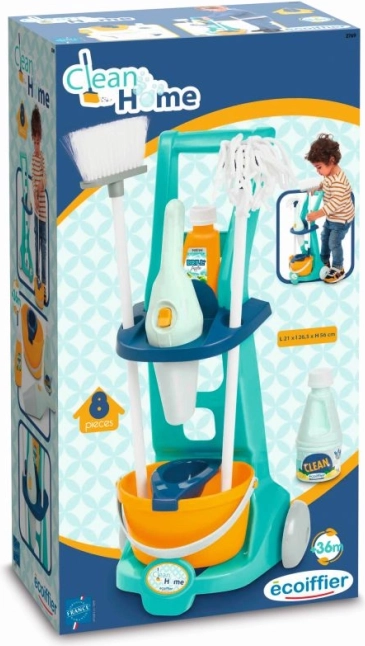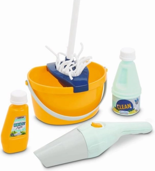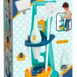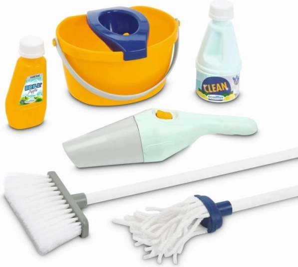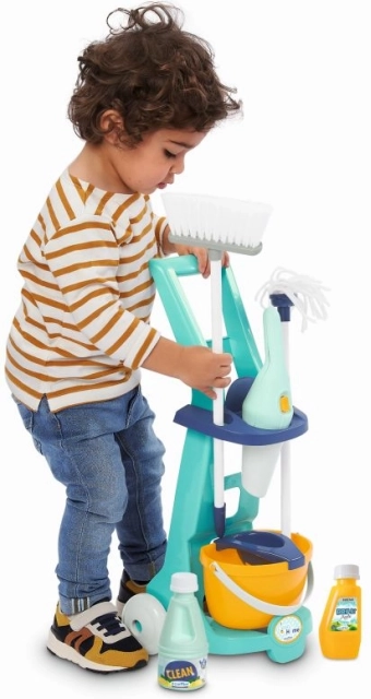 Ten dziecięcy wózek do sprzątania zawiera wszystko, co potrzebne do zabawy w sprzątanie – wiadro, mop, miotłę, środki czystości i ręczny odkurzacz. Jest lekki i łatwy do manipulacji, idealny dla dzieci od 3 lat.