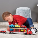 Atracyjny Abrick transporter do transportu samochodzików! Transporter jest wyposażony w składną rampę, która umożliwia łatwe załadunek i rozładunek sześciu kolorowych samochodzików.