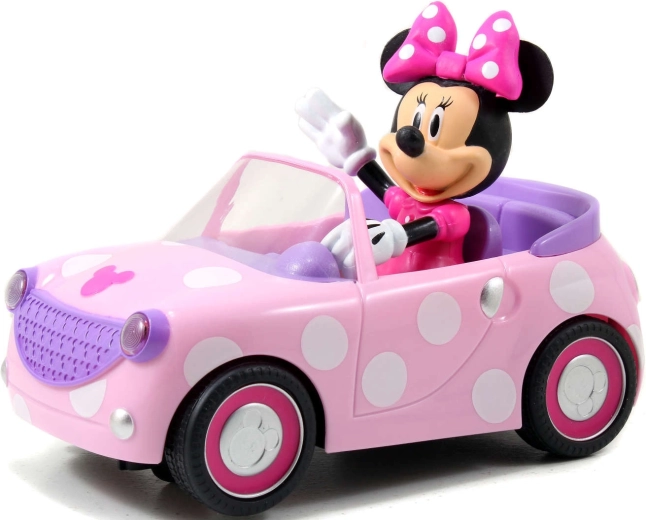 Z tym stylowym kabrioletem na pilot marki Jada w motywie Disney MINNIE MOUSE dzieci wyruszą w pełne zabawy przejażdżki w domu i w podróży. Auto ma wyrazisty różowy design w kropki, dopracowane wnętrze i trwale osadzoną figurkę Minnie z ikoniczną kokardą.