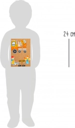 Lekki drewniany młotek i pinezki wspierają motorykę małą, cierpliwość i koncentrację dzieci.