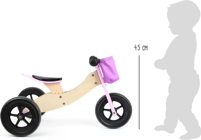 Stylowy i bezpieczny! Lekki drewniany rowerek biegowy z regulowanym siedziskiem, który rośnie razem z dzieckiem. Można go przekształcić z trójkołowca w dwukołowy jeździk, aby rozwijać równowagę i koordynację.