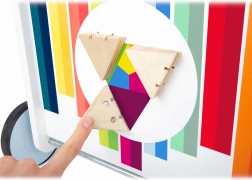 - Układankę różnych kształtów, która pomaga w rozpoznawaniu kształtów i kolorów.