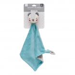 Ekstra miękki, pluszowy kocyk z główką uśmiechniętego misia. Idealny dodatek na popołudniowy odpoczynek. Kontrastowe wzory i kolory misia stymulują rozwój sensoryczny u dzieci, a supełek w rogu kocyka można trzymać lub gryźć.