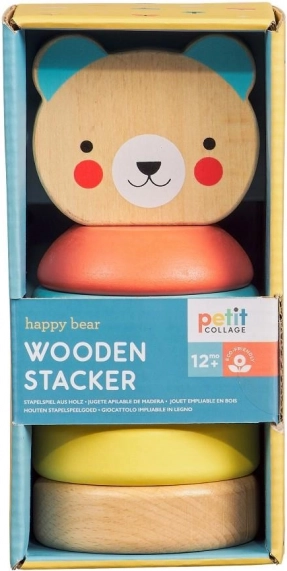 Drewniana wieża Miś marki Petit Collage to kolorowa i bezpieczna układanka dla dzieci od 12 miesięcy. Dzięki charakterystycznym wzorom i kolorom marki dzieci intuicyjnie nawlekają i układają poszczególne elementy, ćwicząc tym samym małą motorykę i koordynację ręka-oko.
