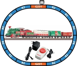 Ten specjalny, świąteczny zestaw oferuje kolorystycznie dopasowany skład z lokomotywą parową 0-4-0 i tendrem, uzupełniony o wagon osobowy i dwa wagony towarowe. Tory ze zintegrowaną podsypką zapewniają większą trwałość, stabilność oraz wygodę wielokrotnego składania. W komplecie znajduje się podstawowy owal, zasilanie i analogowy kontroler – wystarczy złożyć i można jechać.