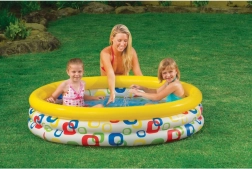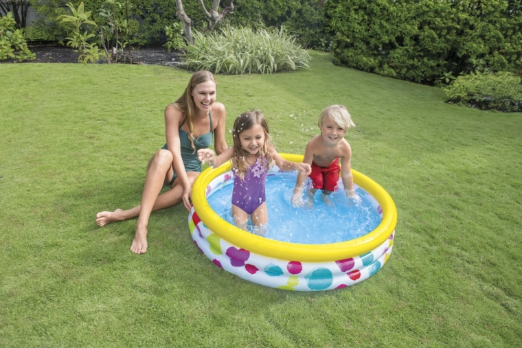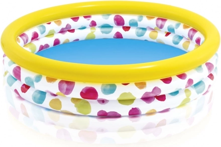 Nadmuchiwany basen INTEX z wesołym, kropkowanym nadrukiem to idealny wybór do dziecięcych wodnych zabaw w ogrodzie. Dzięki trzem niezależnym pierścieniom basenik jest stabilny i wygodny, a jego kompaktowe wymiary 147 × 33 cm pasują niemal wszędzie.