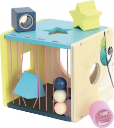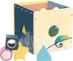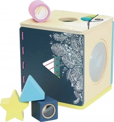 Dzieci mogą wkładać różne kształty do odpowiadających im otworów, co rozwija ich małą motorykę i orientację przestrzenną.
