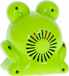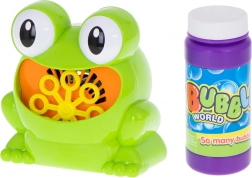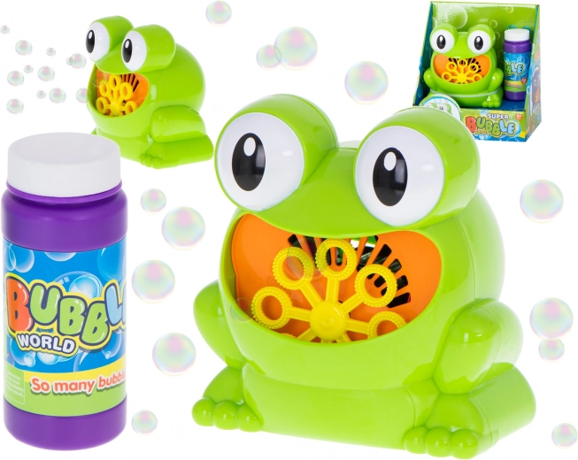 Wesoła zielona żabka z dużymi oczami ożywi każdą dziecięcą imprezę i przyciągnie małych czarodziejów od baniek.