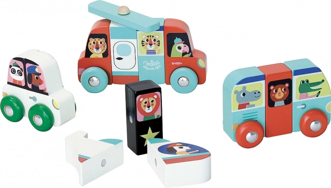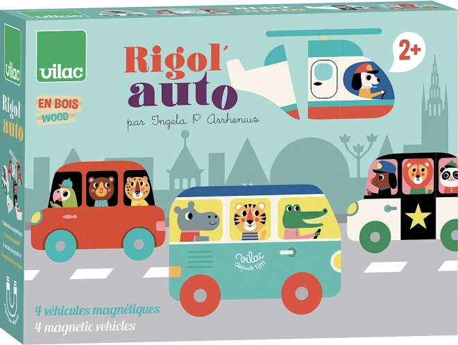 Odkryj kreatywny zestaw Vilac dla najmłodszych: drewniane magnetyczne puzzle, z których złożysz aż cztery różne pojazdy – autobus, helikopter, samochód osobowy i radiowóz. Elementy można dowolnie łączyć, dzięki czemu dzieci rozwijają wyobraźnię i małą motorykę. Ilustracje szwedzkiej artystki Ingeli P. Arrhenius nadają zabawce wyjątkowy retro styl. Odpowiednie od 2 lat, zawiera 12 elementów z wysokiej jakości drewna z bezpiecznymi magnesami.