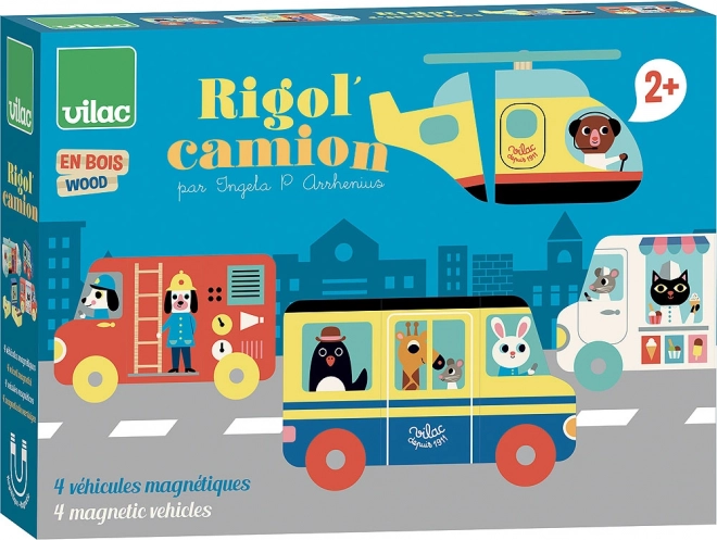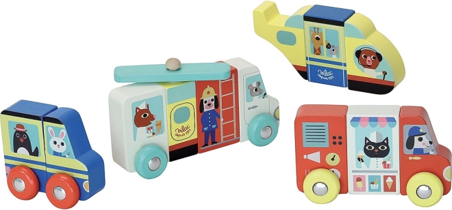 Cztery różne pojazdy z magnetycznymi elementami pozwalają dzieciom układać zarówno poprawne, jak i śmieszne miksy, wspierając kreatywność oraz logiczne myślenie.