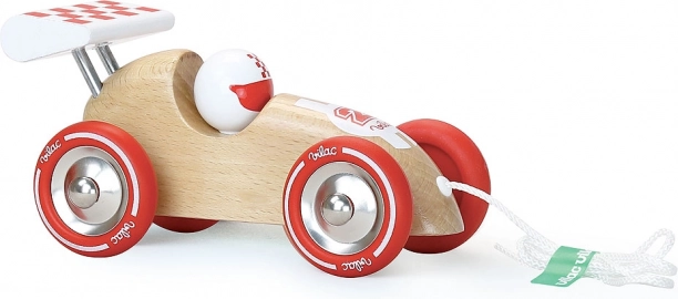 To eleganckie drewniane auto wyścigowe z wyrazistymi czerwonymi detalami i skrzydłem zachwyci dzieci od pierwszego spojrzenia. Dzięki sznurkowi łatwo zabrać je na spacer po mieszkaniu i na zewnątrz, a podczas ciągnięcia naturalnie rozwija się stabilność i koordynacja. Gumowane metalowe koła zapewniają płynną i cichą jazdę.