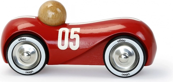 Stylowy czerwony samochód wyścigowy z lakierowanego drewna z metalowymi, gumowanymi kołami ucieszy małych kierowców i miłośników designu. Nadaje się do zabawy i jako dekoracja. Wyprodukowano we Francji, wyróżnia się wysoką jakością wykonania, wytrzymałymi kołami oraz ponadczasowym vintage designem.