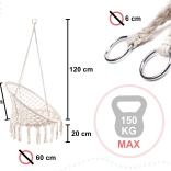 Specjalnie plecione liny oraz metalowa rama gwarantują stabilność i bezpieczeństwo podczas bujania aż do 150 kg.
