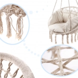 Wiszący fotel Lulilo zachwyca delikatnym wyglądem macramé i neutralnym kolorem, który świetnie wpasuje się do salonu, sypialni oraz na taras. Miękkie poduszki i oparcie pleców gwarantują maksymalny komfort podczas czytania, odpoczynku czy leniuchowania.