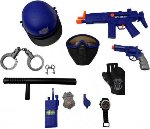 Zostań bohaterem ulicy z tym kompletnym policyjnym wyposażeniem! Zestaw zawiera hełm, pistolet oraz dodatkowe akcesoria do realistycznej zabawy w policjanta. Do pełnej funkcjonalności wymagane są 3× 1.5V baterie AG13 (nie znajdują się w zestawie). Świetny prezent dla dzieci, które kochają pełne akcji przygody i kreatywne zabawy z realistycznymi dźwiękami i efektami.