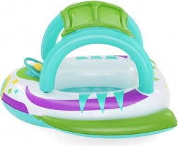 Dzięki stabilnej konstrukcji z wytrzymałego PVC i wygodnym uchwytom dzieci mogą bezpiecznie pływać w płytkiej wodzie pod nadzorem osoby dorosłej. Kierownica z klaksonem dodaje interaktywnej zabawy i rozwija motorykę. Kolorowa „kosmiczna” grafika przyciąga wzrok i pobudza wyobraźnię podczas wodnych harców.