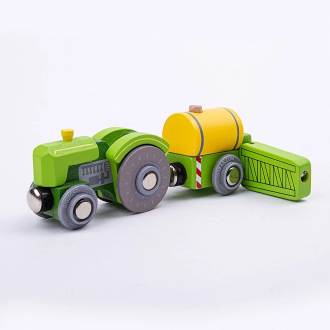 Rozszerz swoją drewnianą kolejkę o stylowy zielony traktor z przyczepą marki Bigjigs Rail. Zestaw jest kompatybilny z większością drewnianych kolejek na rynku i zawiera 3 sztuki drewnianych torów. Wykonany z wysokiej jakości, odpowiedzialnie pozyskanych materiałów, spełnia europejskie normy bezpieczeństwa i wspiera wyobraźnię, zręczność oraz koordynację dzieci.