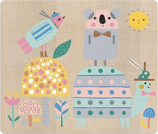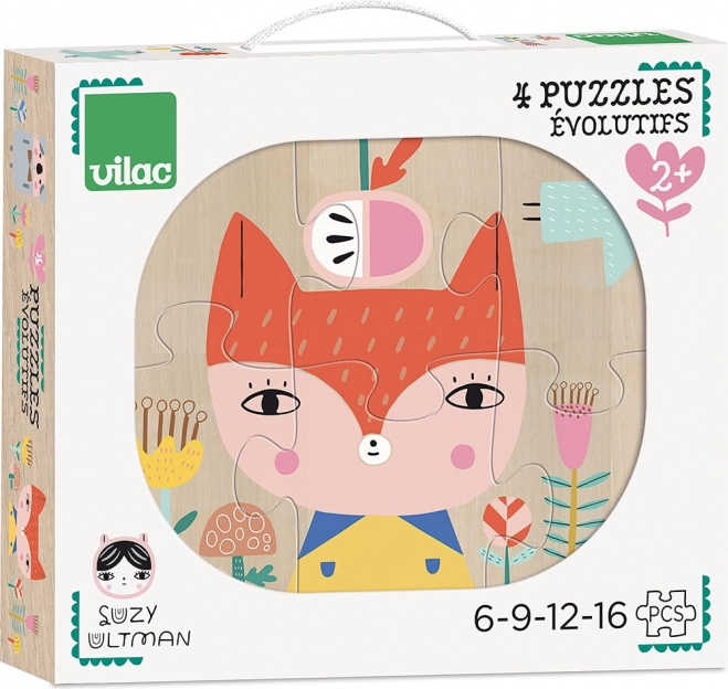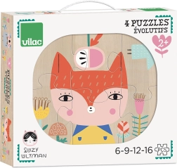 Te piękne drewniane puzzle z opowieścią autorstwa Suzy Ultman bawią i edukują Twoje dzieci. Każdy zestaw zawiera puzzle z 6, 9, 12 i 16 elementami, a każdy obrazek oferuje unikalne spojrzenie na świat zwierząt i natury, pełen kwiatów i ptaków.