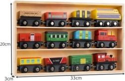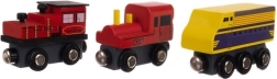 Zestaw zawiera 3 lokomotywy i 9 wagoników w różnych kolorach, oferując tym samym różnorodną zabawę.