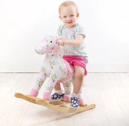 Dzięki miękkiemu pluszowemu siedzisku i stabilnej drewnianej konstrukcji zabawa na tym koniu na biegunach jest wygodna i bezpieczna.