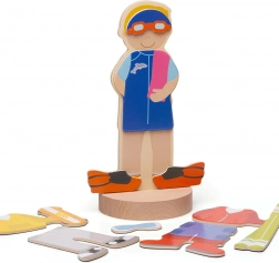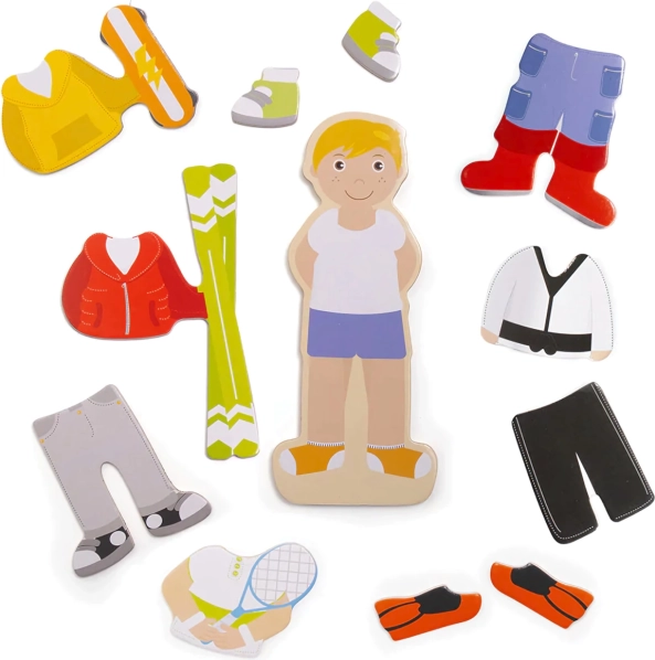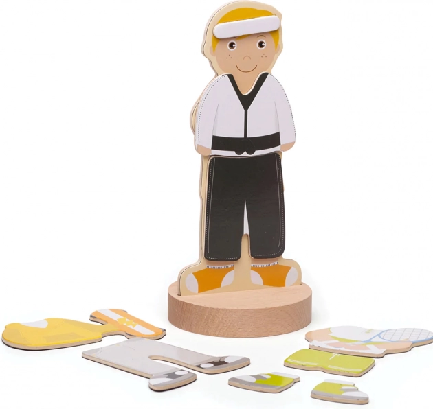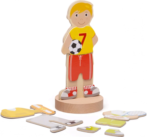 Magnetyczna układanka–przebieranka łączy zabawę i naukę. Dzięki siedmiu sportowym kombinacjom mali twórcy mogą mieszać i dopasowywać ubranka, tworzyć unikalne stroje oraz opowiadać historie o swoich bohaterach. Solidne pudełko z magnetycznym wieczkiem trzyma wszystkie elementy razem – idealne w podróży i w dziecięcym pokoju.