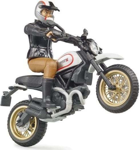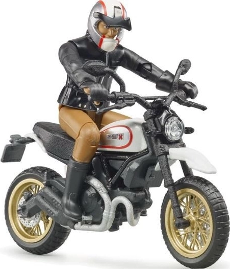 Przeżyj akcję i styl z realistycznym modelem motocykla Scrambler DUCATI Cafe Racer w skali 1:16 marki Bruder. Zestaw zawiera jeźdźca z ruchomymi stawami oraz szczegółowo odwzorowany motocykl z wysokiej jakości plastiku ABS wyprodukowany w Niemczech. Idealny do kreatywnej zabawy, dla kolekcjonerów i fanów legendarnej marki DUCATI.