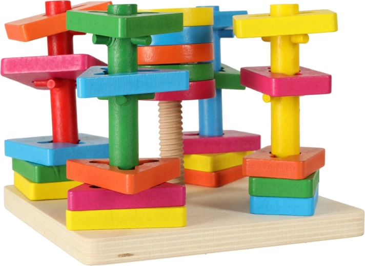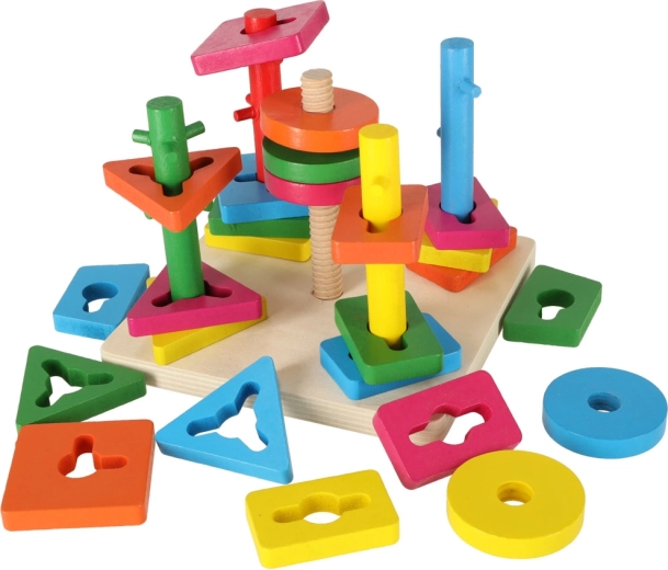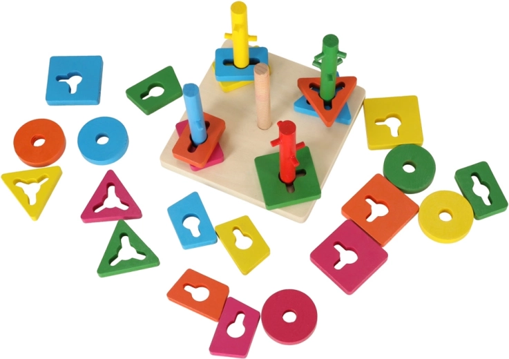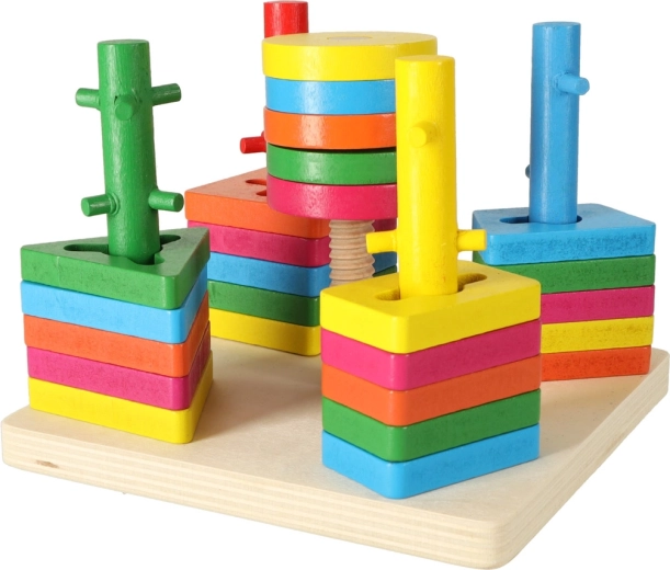 Ta drewniana edukacyjna zabawka jest idealna do rozwoju umiejętności motorycznych i poznawczych Twojego dziecka. Intensywne kolory i różne kształty zachęcą dziecko do zabawy i nauczą je rozpoznawać kształty i kolory.