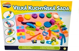 - Kompletny zestaw do kreatywnej zabawy: nożyki, foremki, wykrawacze, praski do masy, wałeczek i inne.