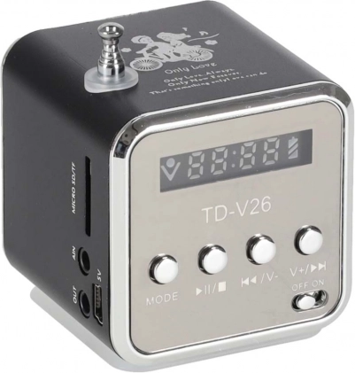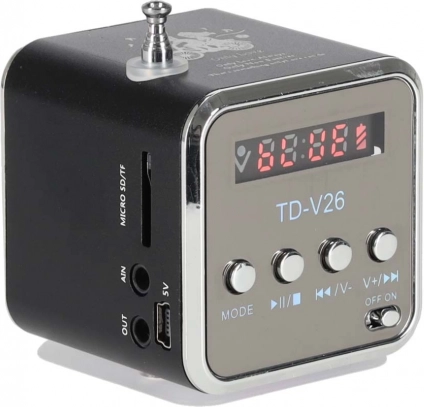 - microSD/TF, USB, wejście liniowe 3,5 mm (AUX), wyjście słuchawkowe 3,5 mm, wejście DC