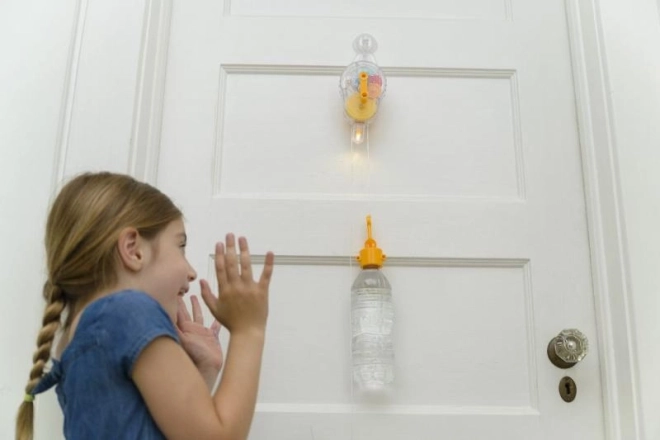 Zawieś obciążnik i obserwuj, jak spadek zamienia energię grawitacyjną w światło. Świetny pokaz fizyki w praktyce, który dzieci natychmiast zrozumieją.