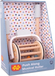 Pięknie wykonany muzyczny wałeczek z drewna 100% FSC® wspiera nie tylko motorykę, ale także umiejętności sensoryczne Twoich dzieci. Dzięki jego ruchowi i dźwiękowi dzwoneczka, który kołysze się pomiędzy drewnianymi listwami, dziecko rozwija swoje umiejętności słuchowe. Zabawka składa się z kombinacji drewna naturalnego i kolorowego, przy czym kolory stymulują wzrokowe postrzeganie.
