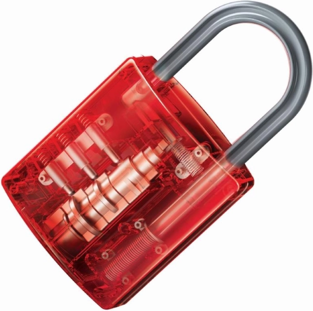 Design kłódki umożliwia obserwację wszystkich widocznych komponentów i zrozumienie ich funkcji.