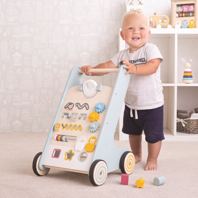 Aktywny chodzik Bigjigs Baby Leśne zwierzątka doskonale wspiera rozwój umiejętności motorycznych i poprawia zręczność dzieci. Produkt oferuje szereg interaktywnych aktywności, takich jak dopasowywanie kształtów, liczenie na liczydle z koralikami oraz manipulacja zębatkami.