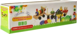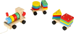 Uroczy drewniany pociąg z lokomotywą i dwoma wagonikami to świetna zabawka dla dzieci od 3 lat. Zawiera kolorowe klocki i sorter do ćwiczenia motoryki, naukę kształtów i kolorów oraz rozwój logicznego myślenia. Pociąg ma ruchome koła i sznurek do ciągnięcia, dzięki czemu dzieci zyskają dużo ruchu i twórczej zabawy.