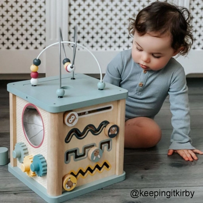 Odkryj wszechstronną kostkę motoryczną z wysokiej jakości drewna 100% FSC, która zajmie dzieci na długie godziny. Na każdej stronie czeka inna aktywność – układanka-wrzutnia, tor kulkowy, kółka zębate i inne. Połączenie naturalnego drewna i delikatnych pastelowych kolorów jest idealne dla chłopców i dziewczynek. Zabawka wspiera rozwój motoryki, komunikacji i rozpoznawania liczb oraz jest bezpieczna dla dzieci dzięki materiałom z certyfikatem FSC.