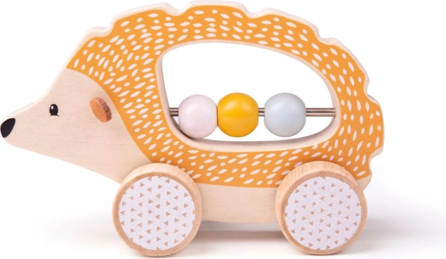 Jeżyk pomaga rozwijać małą motorykę dzięki ruchomym koralikom na metalowym pręcie.