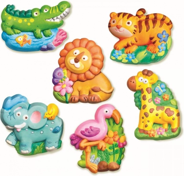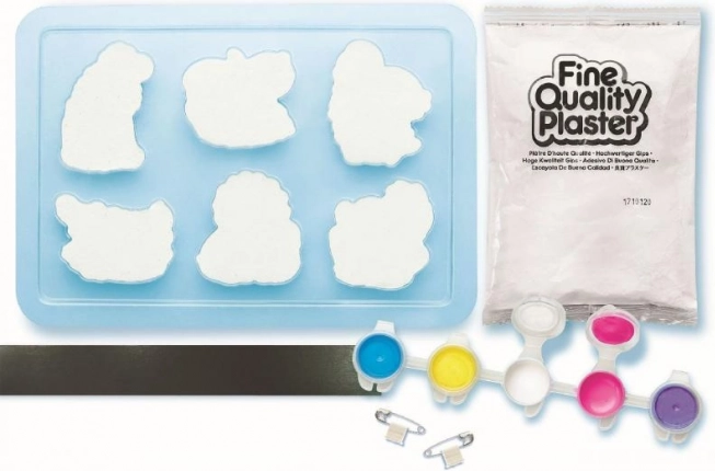 Zestaw zawiera materiały do wykonywania gipsowych odlewów, które dzieci mogą samodzielnie malować. W zestawie znajduje się tacka z plastikowymi formami oraz wysokiej jakości gips.