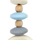 Wysokiej jakości drewniana zabawka pobudza wyobraźnię i zachwyca pastelowymi kolorami. W formie zabawy trenuje małą motorykę dziecka. Aby cieszyć się nią przez długi czas, unikaj nadmiernego kontaktu z wodą, czyść zabawkę wyłącznie wilgotną ściereczką. Grzechotki nie wygotowuj, nie wkładaj do sterylizatora ani nie używaj innych metod sterylizacji. Główne właściwości: rozwija umiejętności motoryczne, wykonana etycznie z drewna z ekologicznie zarządzanych lasów, zastosowano ekologiczne i trwałe farby